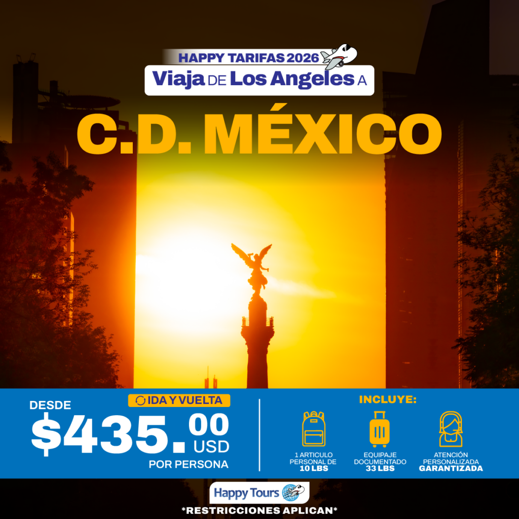 ¡Haz realidad tus sueños de viajar con Happy Tours Travel! Te ofrecemos boletos aéreos al mejor precio, sin sorpresas ni letras pequeñas. Seleccionamos los mejores boletos, asientos cómodos, y te hacemos el pre-check-in gratis. Si necesitas agregar maletas o cambiar fechas, ¡estamos aquí para ayudarte!